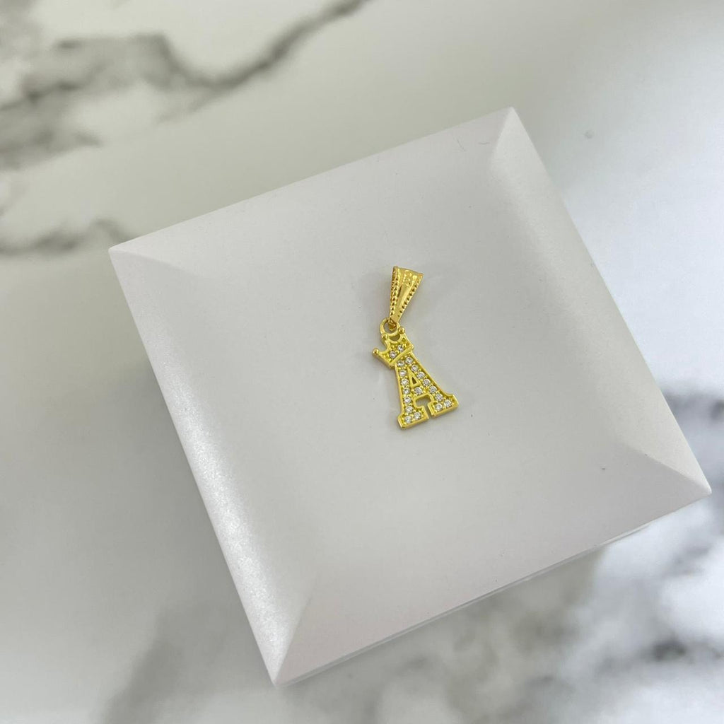 Dije Letra A Con Corona y Circon Blanco 2cm /0.77/gr ID: 2964